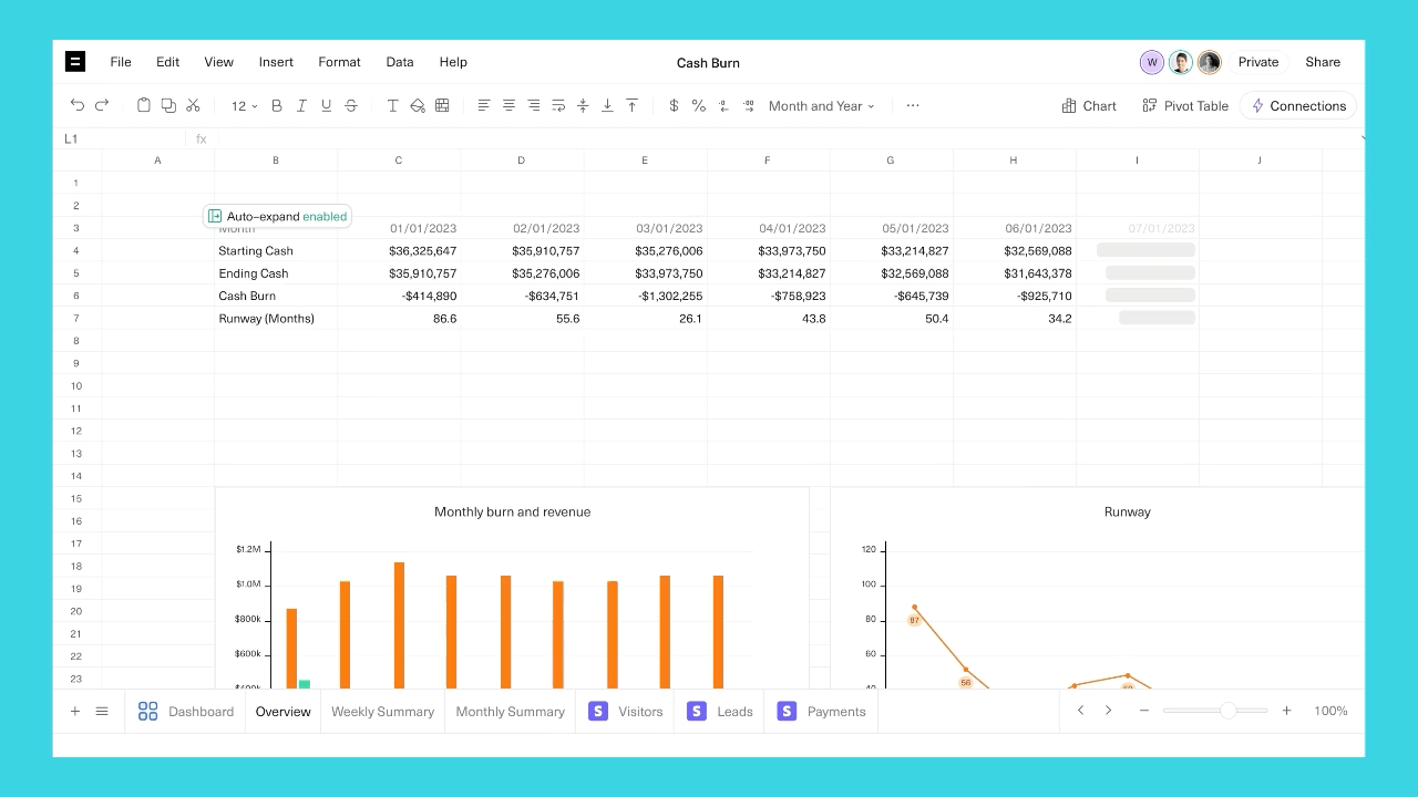 Automating the tedious, repetitive tasks required in traditional spreadsheets today. Build a spreadsheet that's not only the most modern, but that delights. - Making reporting dead easy 📊