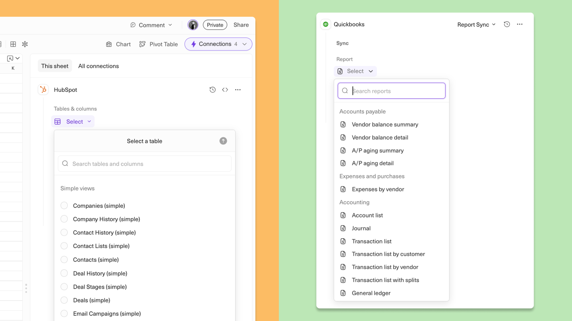 From Snowflake to Stripe to QuickBooks – if there's data in it, you can query it right inside your spreadsheet. All together too. That's right; no more downloading CSVs or copying and pasting queries. 😅