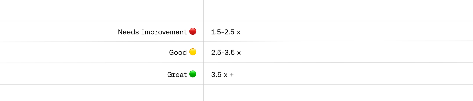 In general, you can benchmark your LTV:CAC performance by relying on the following standards: